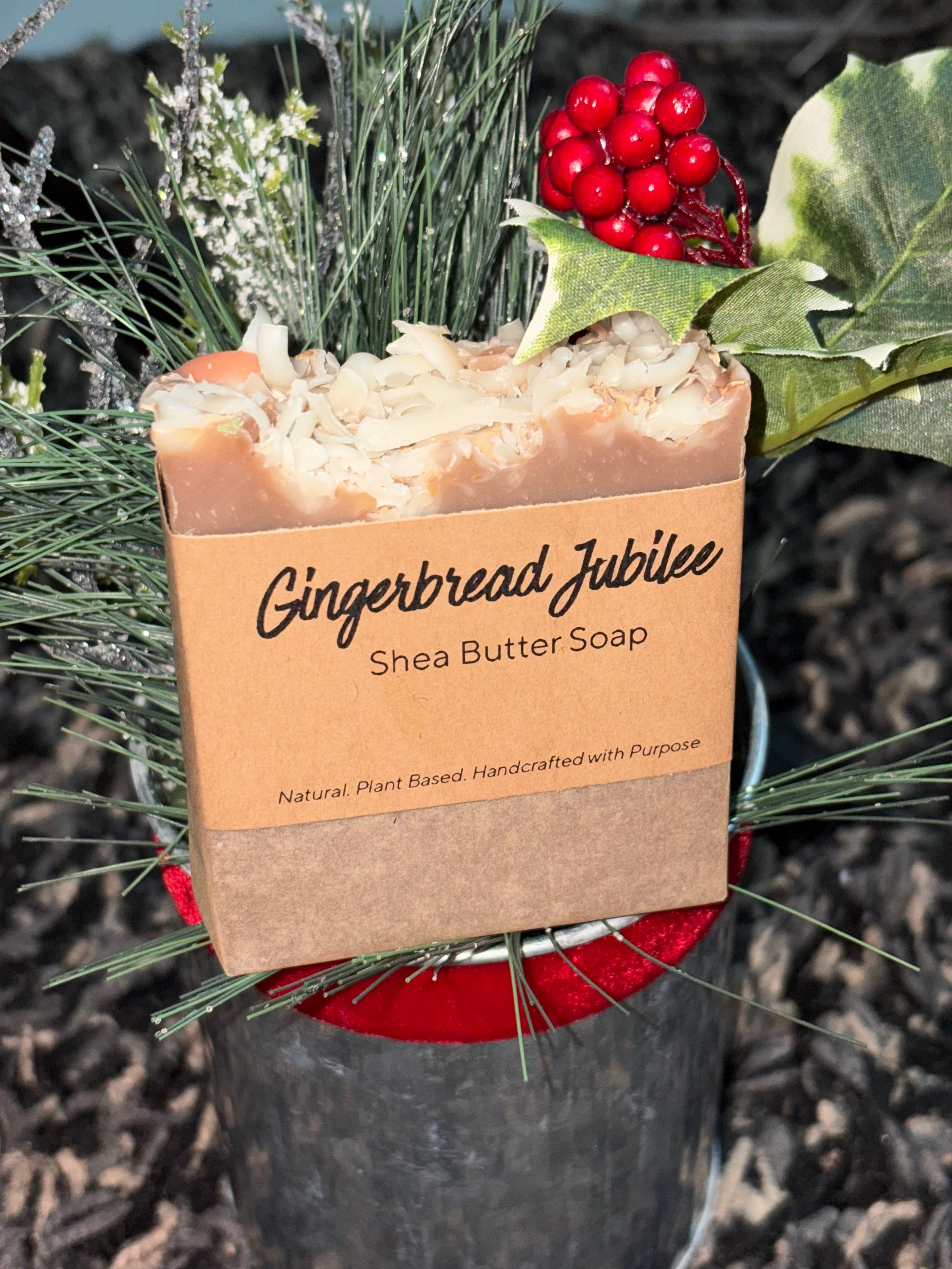 Ingredients: Olive oil, coconut oil, castor oil, palm oil, shea butter, gingerbread fragrance oil, clays, colloidal oatmeal, sodium hydroxide, distilled water.