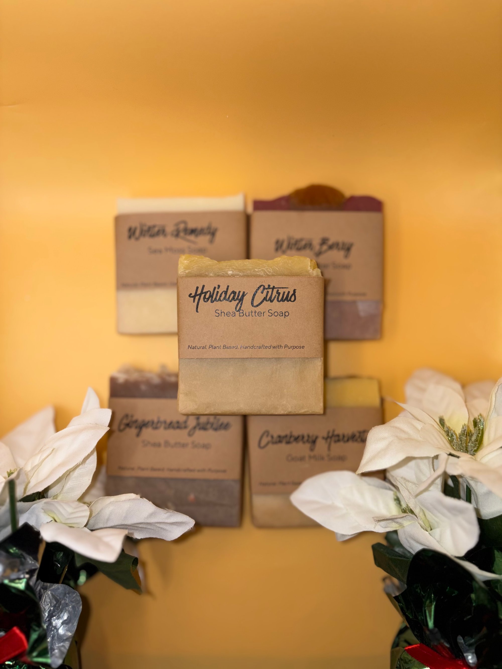 A refreshing, spa-inspired winter bar infused with organic sea moss and a clarifying blend of tea tree, lavender, and peppermint essential oils. Known for its purifying and soothing properties, this bar is ideal for winter skin care and seasonal self-care routines.